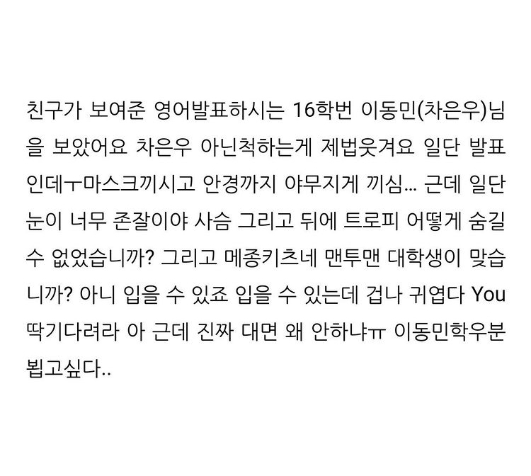 차은우 아닌 척하고 수업 듣는 차은우(이동민)