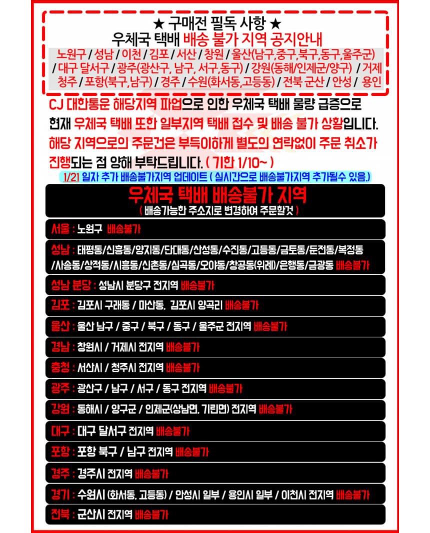 CJ대한통운 파업으로 인한 우체국 택배 배송불가지역 무조건 알아두기